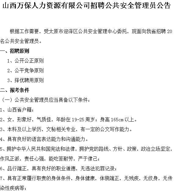 根據(jù)工作需要,經(jīng)古交市政府批準(zhǔn),現(xiàn)面向古交市公開招聘輔助工作人員30名。招聘工作由山西萬(wàn)保人力...